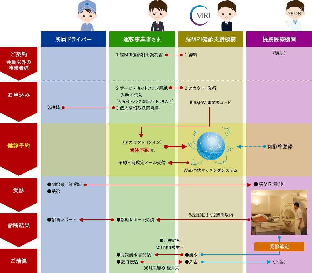 ※大阪府トラック協会会員以外の事業者様は一般社団法人脳MRI健診支援機構とご契約いただく必要がございます。