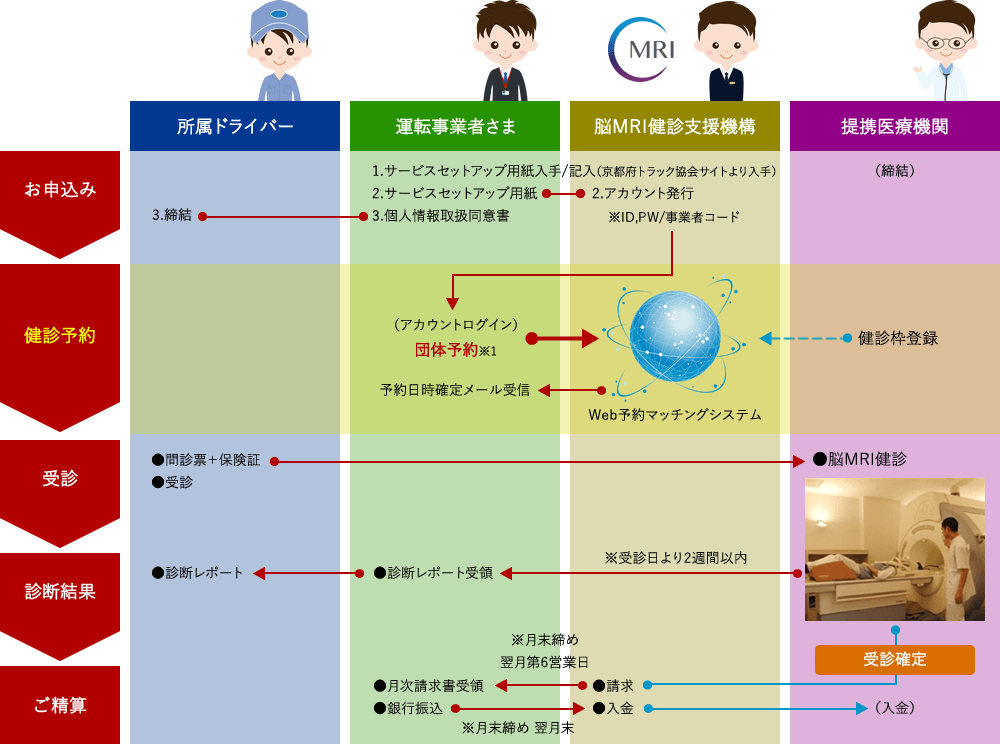 一般社団法人運転従事者脳MRI健診支援機構と京都府トラック協会は包括契約を締結しておりますので、